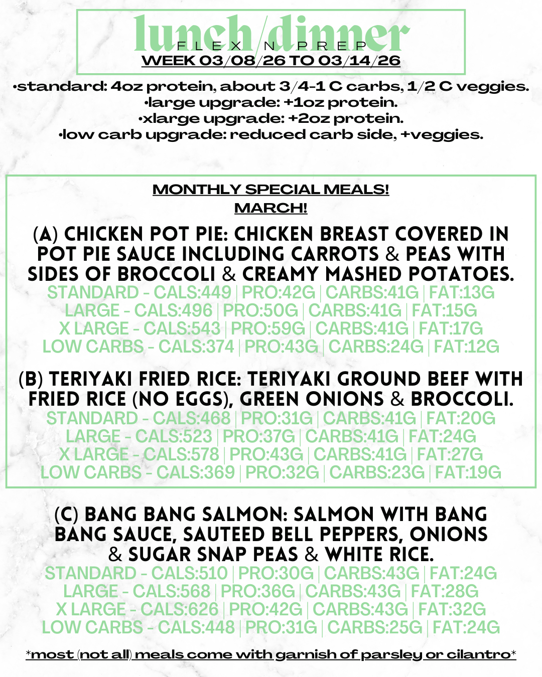 Got Gainz? Level up any meal to our Large (5oz protein) or XL (6oz protein) options!