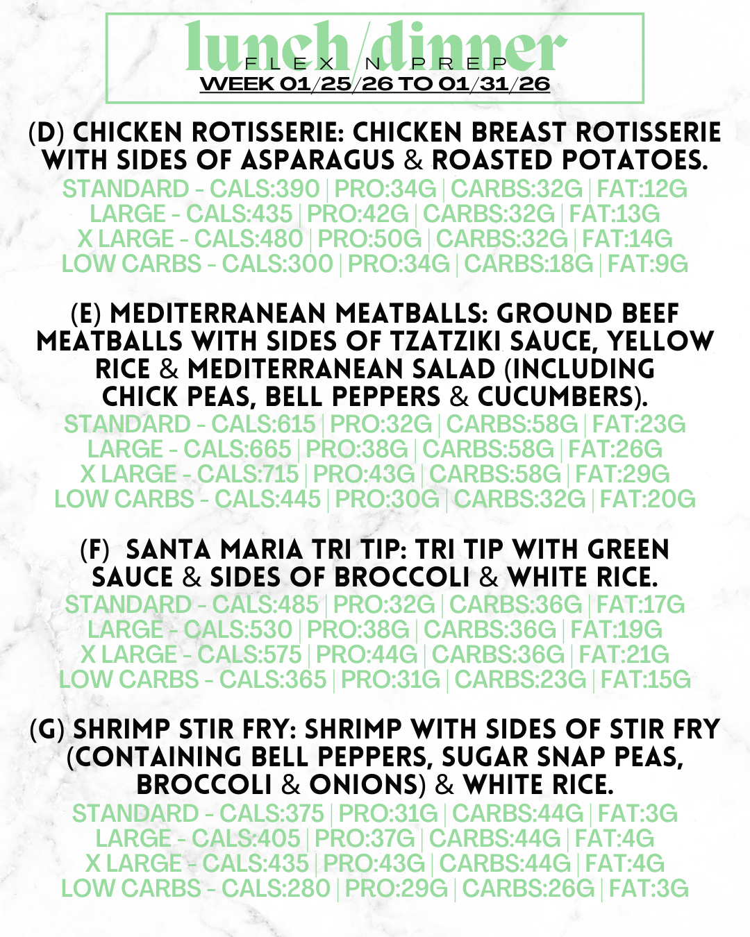 30 Lunch/Dinner Meals – Weekly Subscription