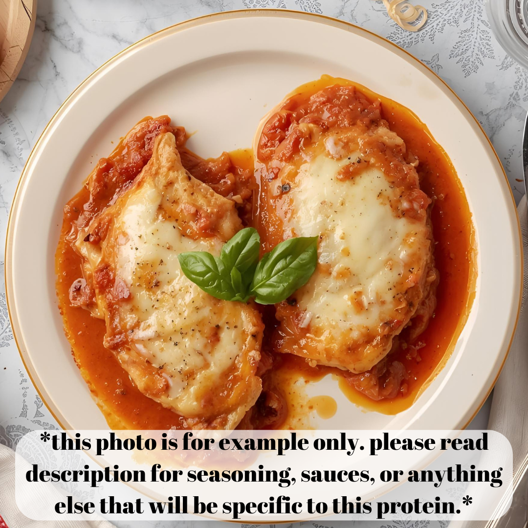 1 pound of cooked & seasoned/marinated Chicken Breast Parmigiana.